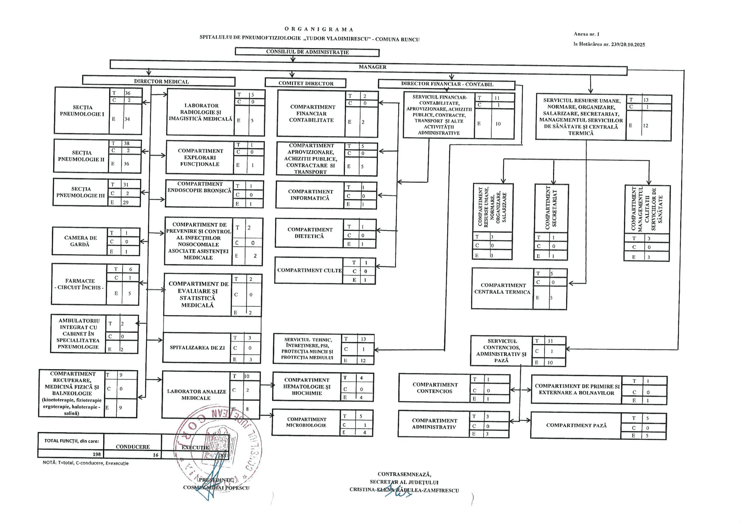 Hotărâre privind modificarea Organigramei și Statului de funcții ale Spitalului de Pneumoftiziologie “Tudor Vladimirescu” – Comuna Runcu