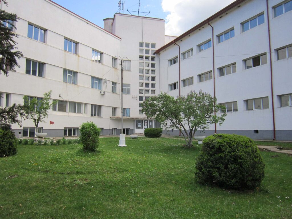 Ca edificiu, clădirea are forma literei « Y » , cu braţele din faţă larg evazate. Aripile clădirii sunt destinate spitalizării bolnavilor, iar prelungirea ( coada ) literei Y este folosită pentru administraţie la parter, compartiment explorări funcţionale la etajul I şi sala de spectacole la etajul II.